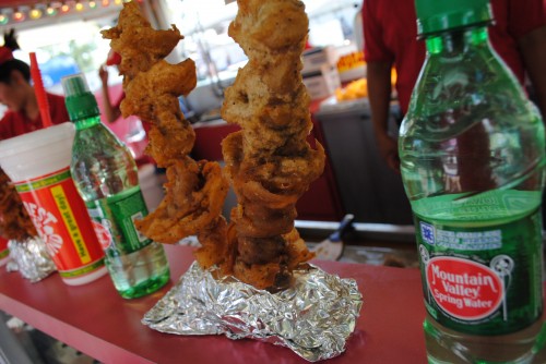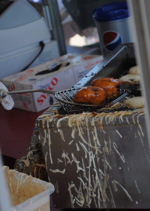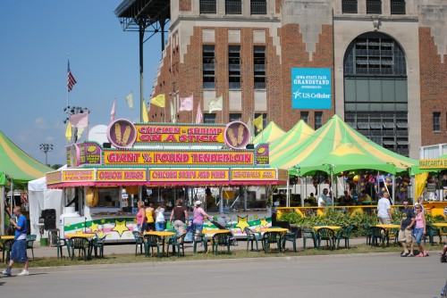 After the two-hour drive to Des Moines, Iowa, my taste buds were ready for the greasy foods on a stick and ridiculous fair concoctions that only theIowa State Faircould deliver. My goal was to attend the fair on an empty stomach so I could report back to you, dear ESer, about how the delicious fried things on a stick tasted. But I have a confession to make: I WAS NOT HUNGRY. After a sweet and greasy fried twinkie that got me all sticky, my body said“no way are you eating any more of this shit.” No, the wasp drowning in the sugary residue around a funnel cake was not appetizing. And last time I checked, hot beef sundaes would make any normal person want to vomit. About eight bottles of water and 500 pictures later, I was exhausted, smelly,tired and grossed out. I never did find those chicken lips on a stick. I feel somewhat cheated.